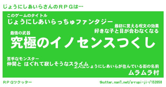| ヒーロー風カッコイイあだ名 | 『スーパージョウニシアイラ』 |
