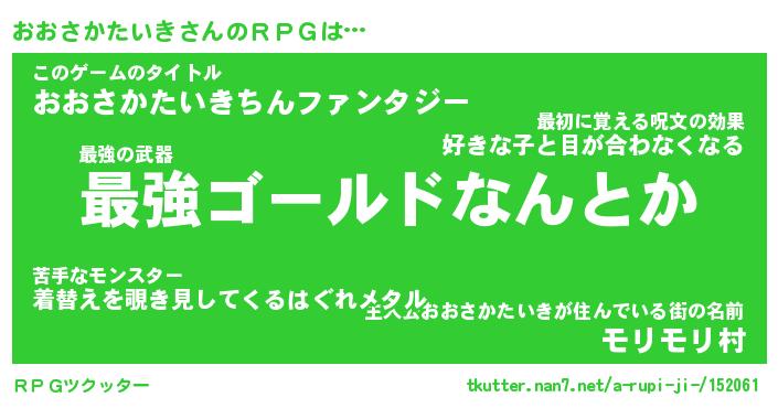 | 胡散臭い通販商品みたいなあだ名 | 『モテモテ間違いなし霊験あらたかなお札…その名も「おおさかたいき」』 |