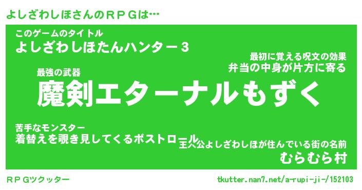 | ヘコむあだ名 | 『よしにゅー』『つくし』『よしを』 |