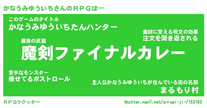 | 男性向けラノベタイトル風あだ名 | 『かなうみゆういちの憂鬱』 |