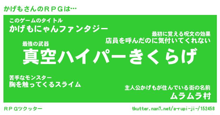 | ファンタジー風あだ名 | 『カゲフェル』『エターナルカゲモー』 |