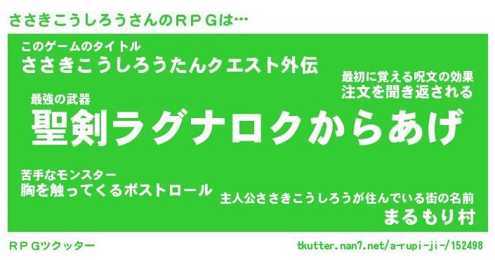 | ヒーロー風カッコイイあだ名 | 『スーパーササキコウシロウ』 |