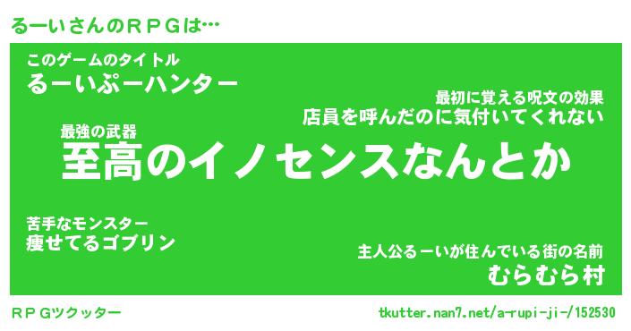 | ファンタジー風あだ名 | 『ルーフェル』『エターナルルーイー』 |