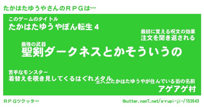 | 伝説のあだ名 | 『伝説の傭兵たかはたゆうや』 |