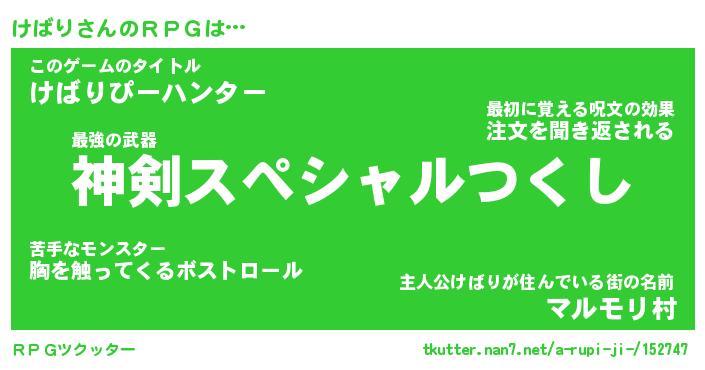 | ヒーロー風カッコイイあだ名 | 『スーパーケバリ』『ウルトラけばりマン』 |