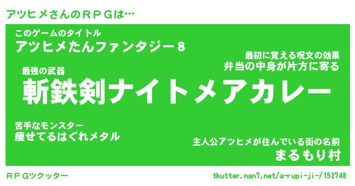 | 胡散臭い通販商品みたいなあだ名 | 『必ず成功する霊験あらたかなお札…その名も「アツヒメ」』 |