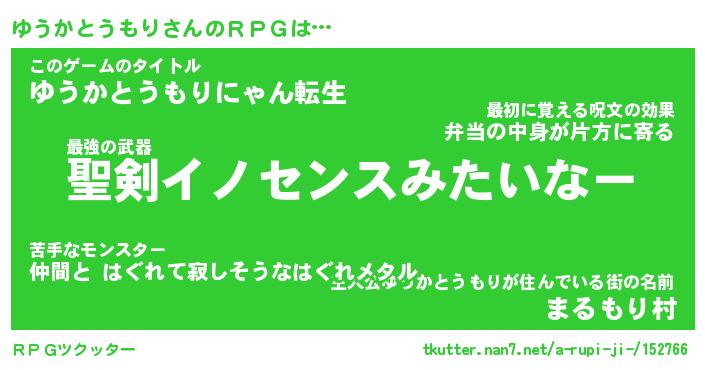| 胡散臭い通販商品みたいなあだ名 | 『必ず成功する霊験あらたかなお札…その名も「ゆうかとうもり」』 |