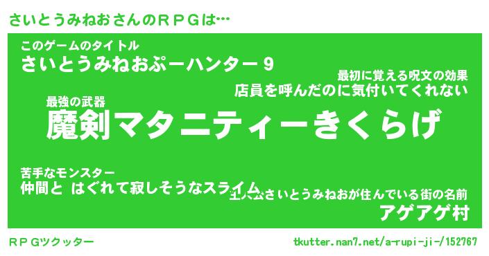 | 肩書あだ名 | 『さいとうみねお御曹司』 |