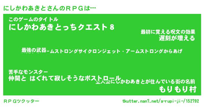 | 伝説のあだ名 | 『伝説の竜騎士にしかわあきと』 |