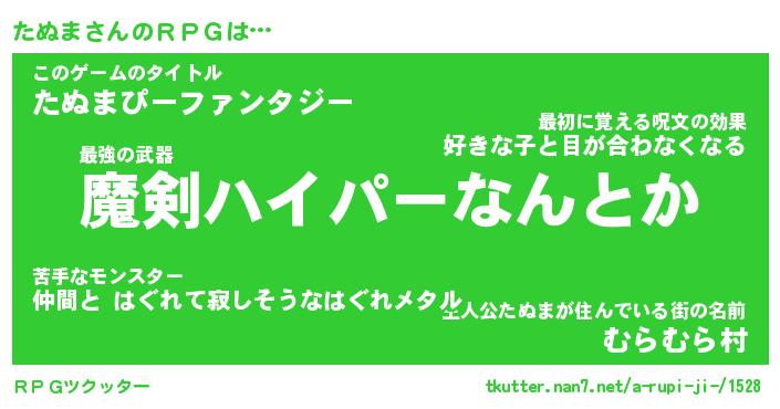 | ファンタジー風あだ名 | 『タヌフェル』『エターナルタヌマー』 |