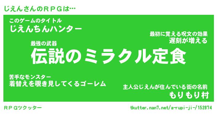 | 男性向けラノベタイトル風あだ名 | 『じえんの憂鬱』 |