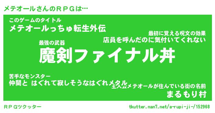 | ファンタジー風あだ名 | 『メテフェル』『エターナルメテオールー』 |