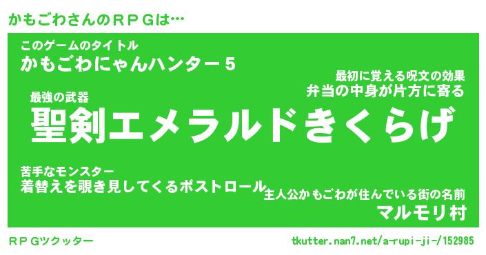 | ファンタジー風あだ名 | 『カモフェル』『エターナルカモゴワー』 |