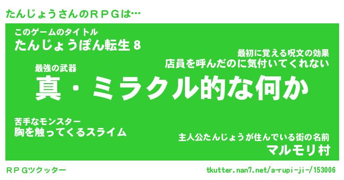 | ファンタジー風あだ名 | 『タンフェル』『エターナルタンジョウー』 |