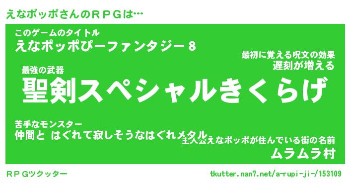 | ファンタジー風あだ名 | 『エナフェル』『エターナルエナポッポー』 |