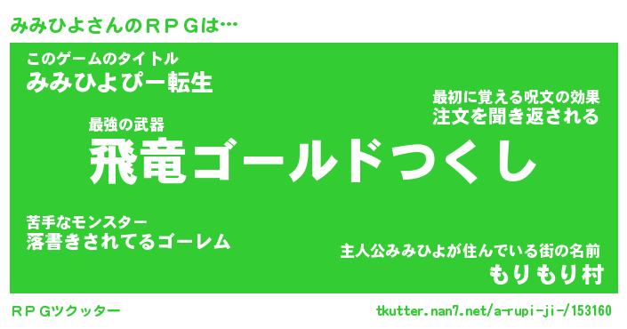 | 伝説のあだ名 | 『封印されし傭兵みみひよ』 |