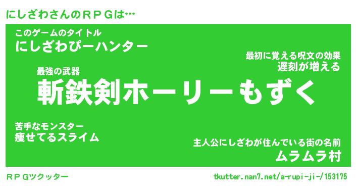 | 男性向けラノベタイトル風あだ名 | 『にしざわの憂鬱』 |