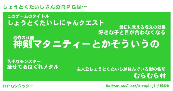 | 男性向けラノベタイトル風あだ名 | 『しょうとくたいしの憂鬱』 |