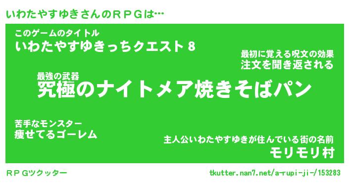 | 肩書あだ名 | 『いわたやすゆき御曹司』 |
