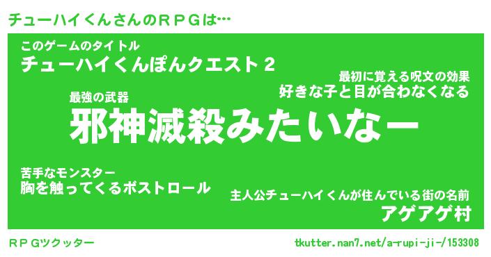 | 伝説のあだ名 | 『封印されしスナイパーチューハイくん』 |