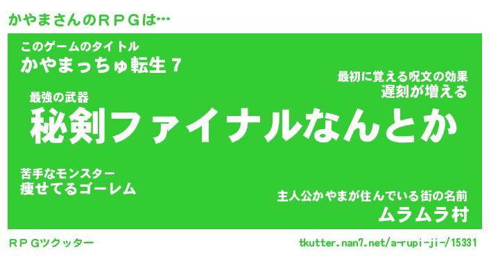 | ファンタジー風あだ名 | 『カヤフェル』『エターナルカヤマー』 |