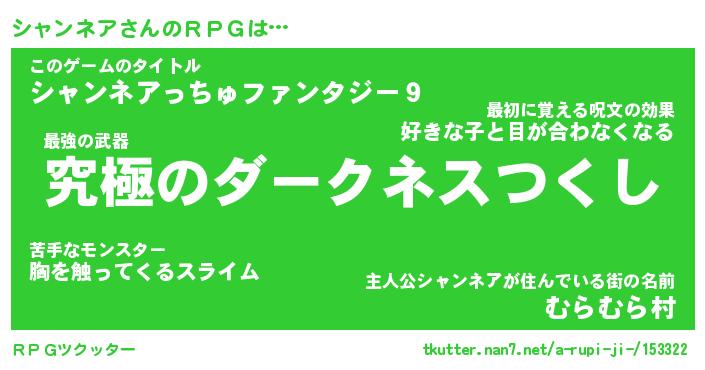 | ファンタジー風あだ名 | 『シャフェル』『エターナルシャンネアー』 |
