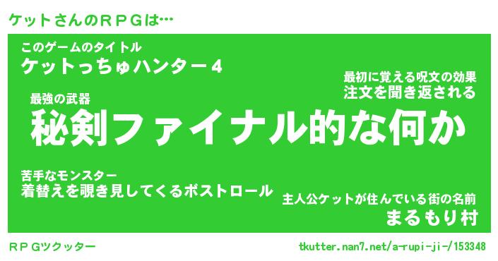 | 男性向けラノベタイトル風あだ名 | 『ケットの憂鬱』 |