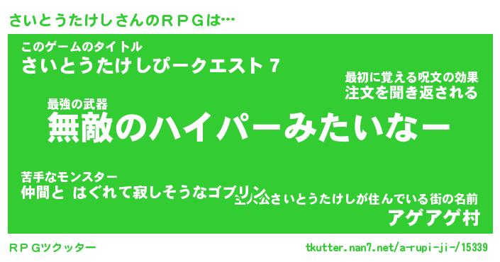 | ヒーロー風カッコイイあだ名 | 『スーパーサイトウタケシ』 |