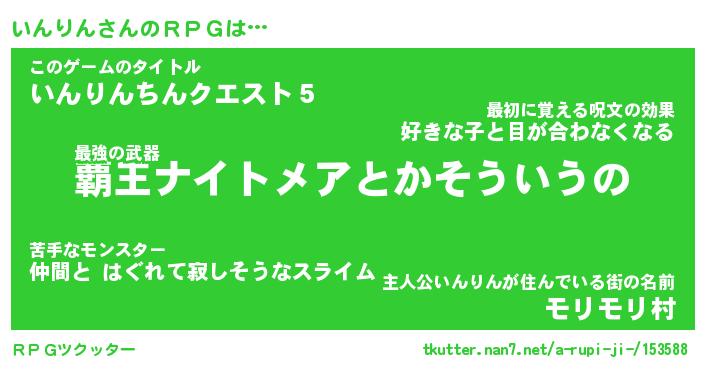 | 男性向けラノベタイトル風あだ名 | 『インリンアートオンライン』 |
