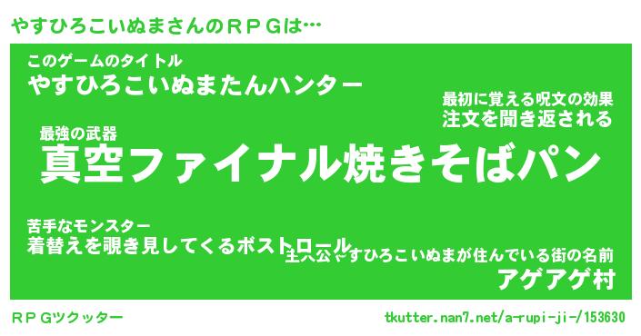 | 伝説のあだ名 | 『封印されし竜騎士やすひろこいぬま』 |