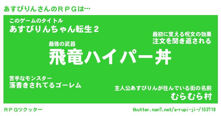| ファンタジー風あだ名 | 『アスフェル』『エターナルアスピリンー』 |