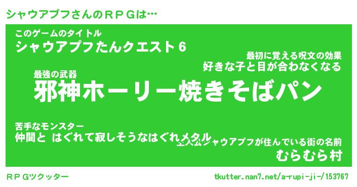 | 男性向けラノベタイトル風あだ名 | 『シャウアプフアートオンライン』 |