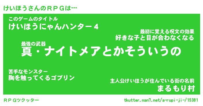 | ファンタジー風あだ名 | 『ケイフェル』『エターナルケイホウー』 |