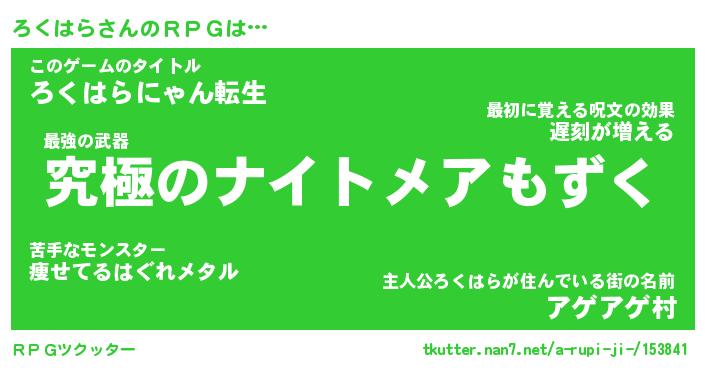 | 2回繰り返すあだ名 | 『ろくろく』『ろろくく』『のろのろ』 |