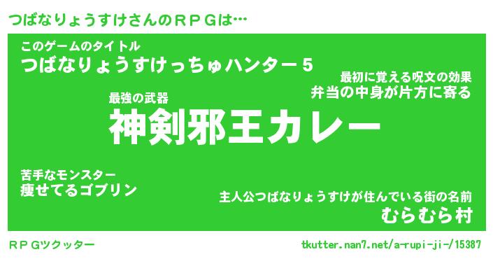 | 男性向けラノベタイトル風あだ名 | 『つばなりょうすけの憂鬱』 |
