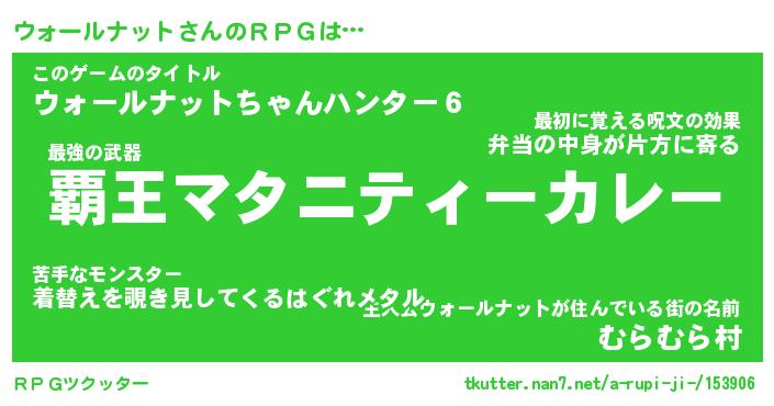| 伝説のあだ名 | 『封印されしスナイパーウォールナット』 |