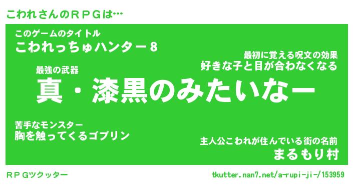 | 伝説のあだ名 | 『封印されしスナイパーこわれ』 |