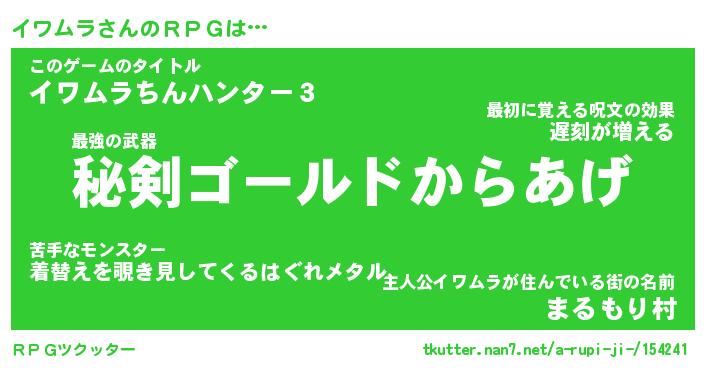 | 男性向けラノベタイトル風あだ名 | 『イワムラの憂鬱』 |