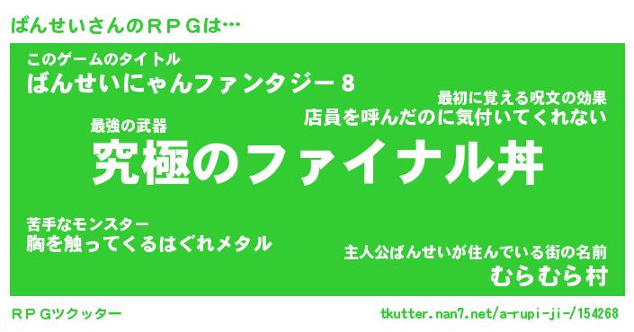 | ヒーロー風カッコイイあだ名 | 『スーパーバンセイ』『魔戒騎士バン』 |