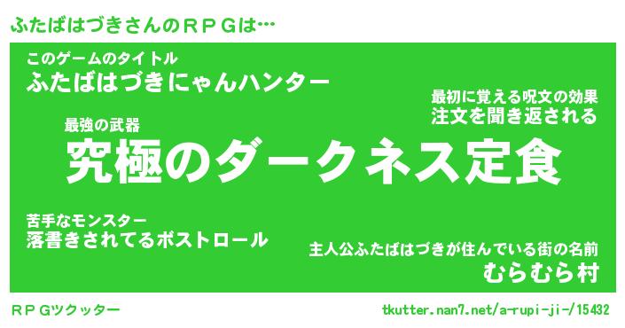 | ヒーロー風カッコイイあだ名 | 『スーパーフタバハヅキ』『暗黒騎士フタ』 |