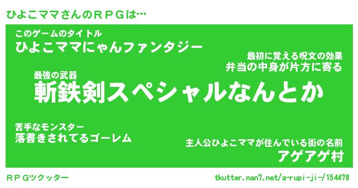 | ファンタジー風あだ名 | 『ヒヨフェル』『エターナルヒヨコママー』 |