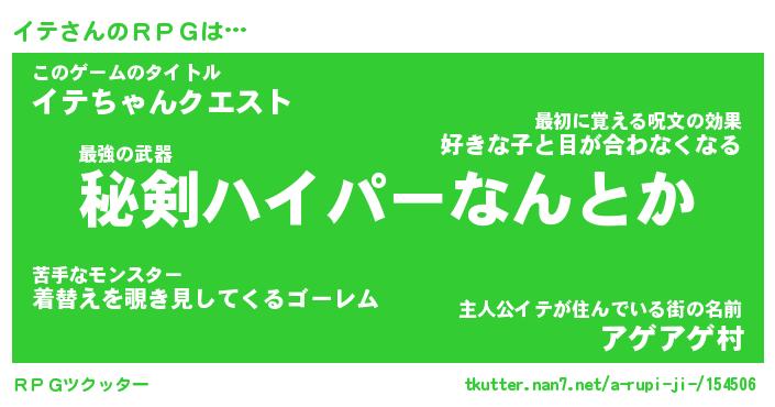 | ファンタジー風あだ名 | 『イテフェル』『エターナルイテー』 |