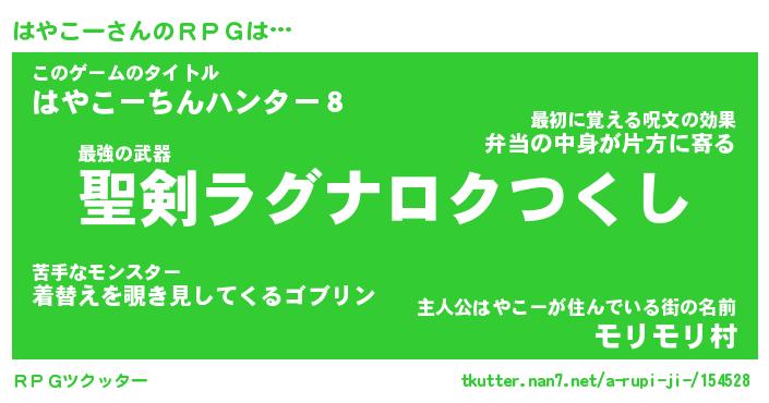 | 伝説のあだ名 | 『伝説の竜騎士はやこー』 |