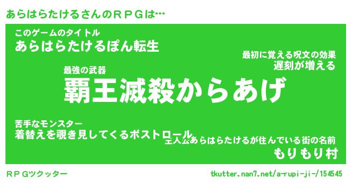 | 伝説のあだ名 | 『封印されしスナイパーあらはらたける』 |