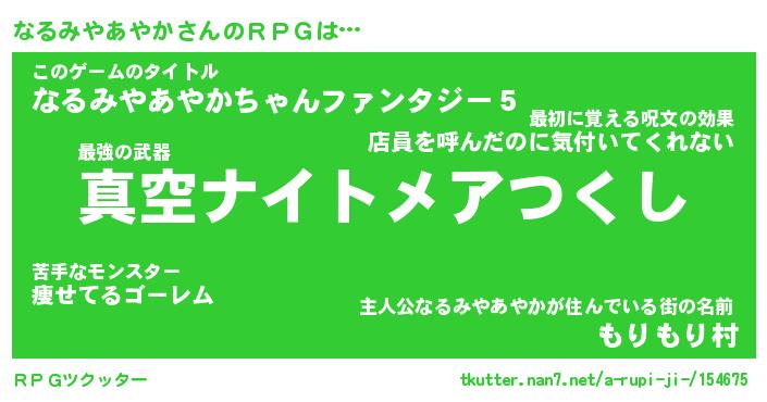 | 伝説のあだ名 | 『封印されしスナイパーなるみやあやか』 |