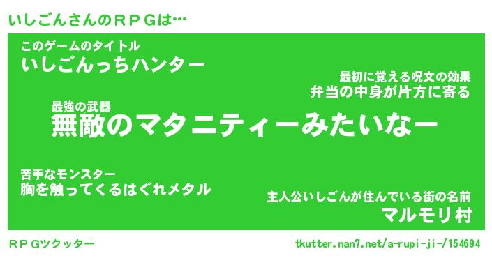| 男性向けラノベタイトル風あだ名 | 『イシゴンアートオンライン』 |