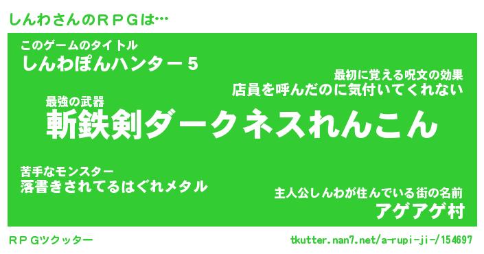 | 伝説のあだ名 | 『伝説の傭兵しんわ』『最古の忍者しんわ』 |