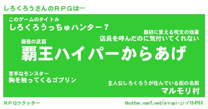| 伝説のあだ名 | 『封印されし竜騎士しろくろう』 |
