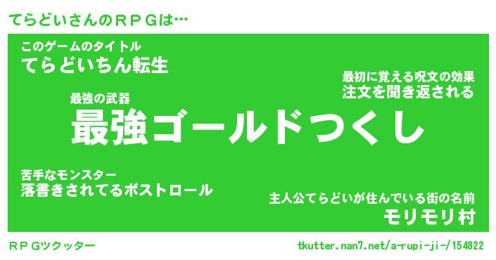 | 男性向けラノベタイトル風あだ名 | 『テラドイアートオンライン』 |