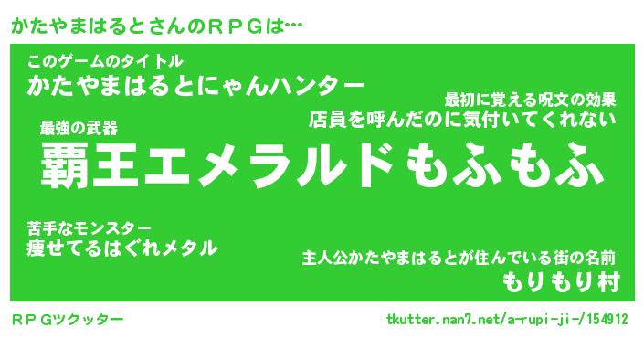 | 男性向けラノベタイトル風あだ名 | 『カタヤマハルトアートオンライン』 |
